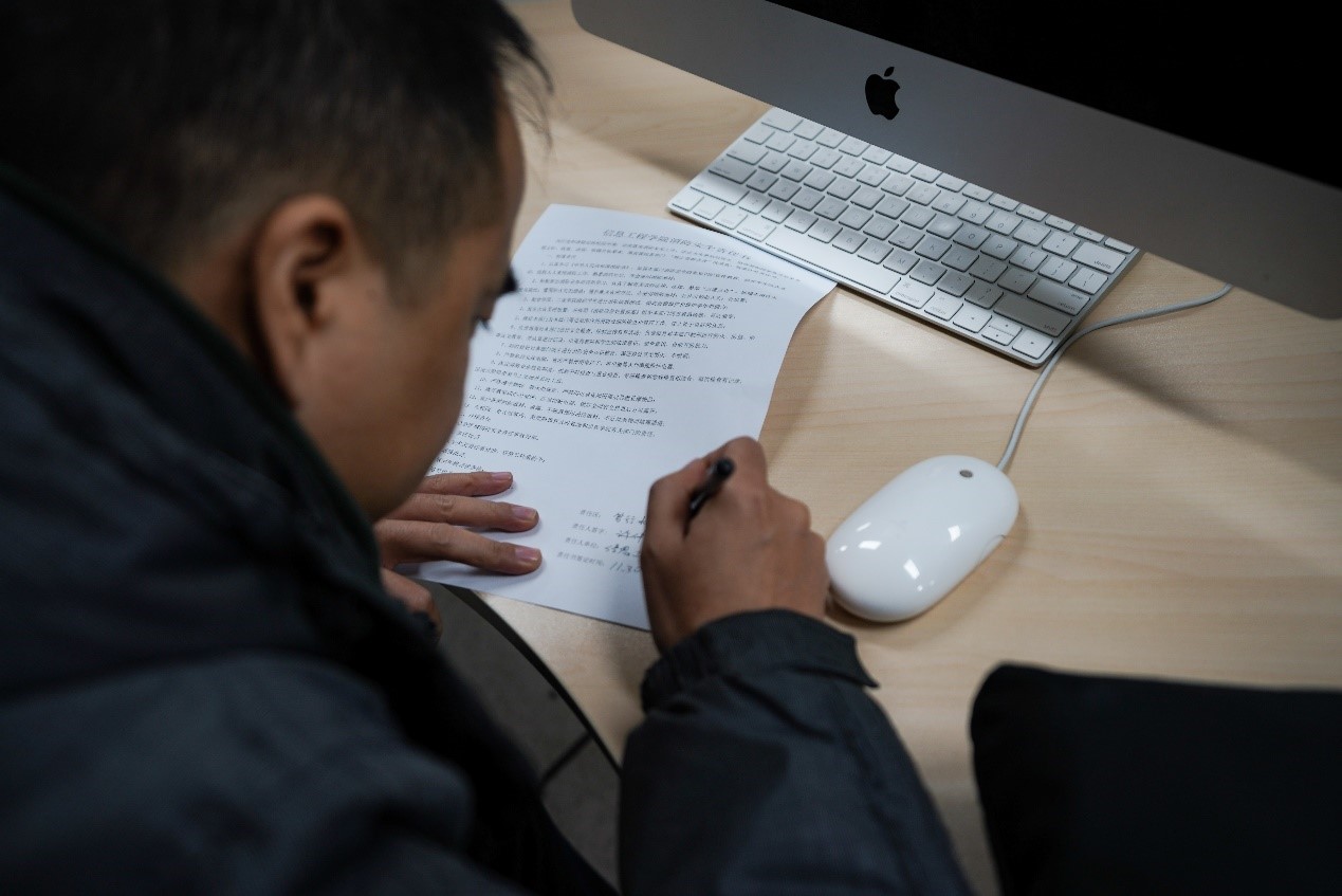在赵大鹏副经理讲话结束后,每一位教师签订了《信息工程公司消防安全责任书》。各教研室主任、实训室消防安全区域负责人、院办消防安全区域负责人、大数据双创中心消防安全区域负责人签订了《信息工程公司2020年消防安全承诺书》。(供稿:张璞,审稿:赵大鹏)