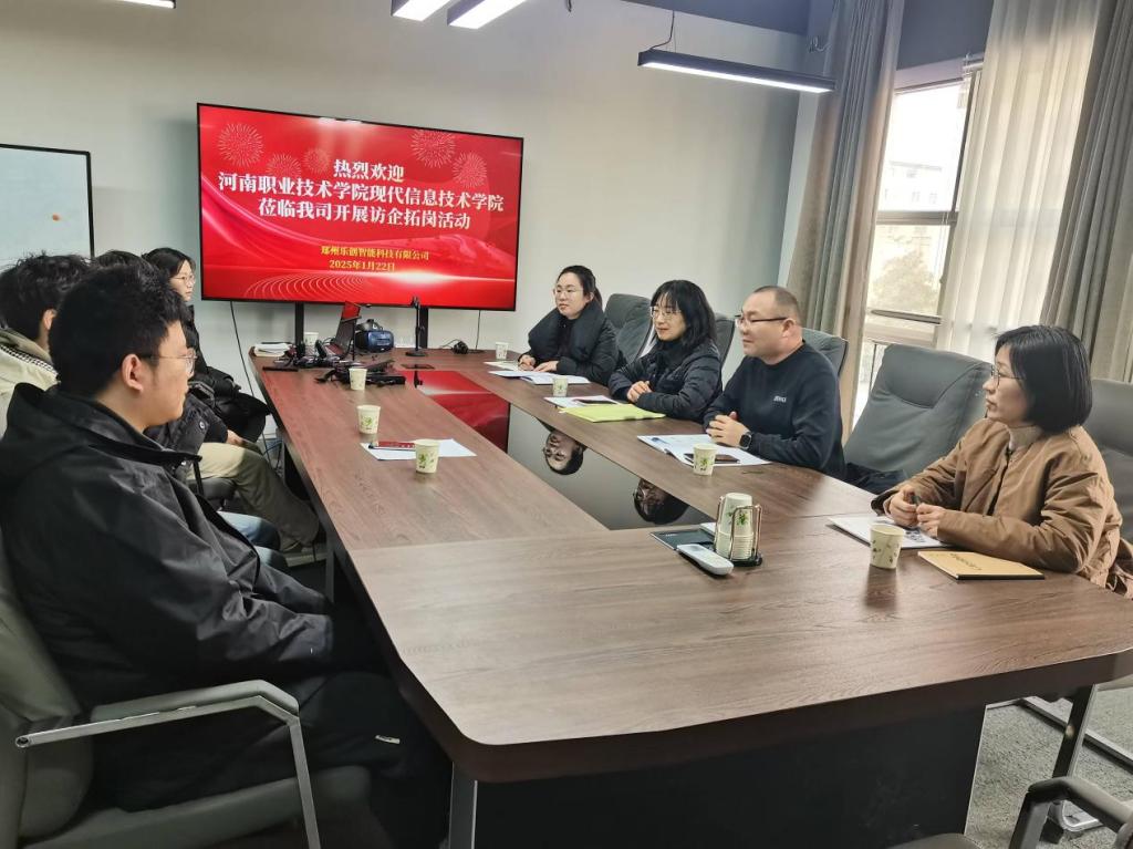 1月22日上午,yl6809永利经理李纪云带队前往郑州乐创智能科技有限公司开展访企拓岗活动,副经理董俊磊、虚拟现实技术应用教研室主任贾亚娟及专业老师陪同参加。