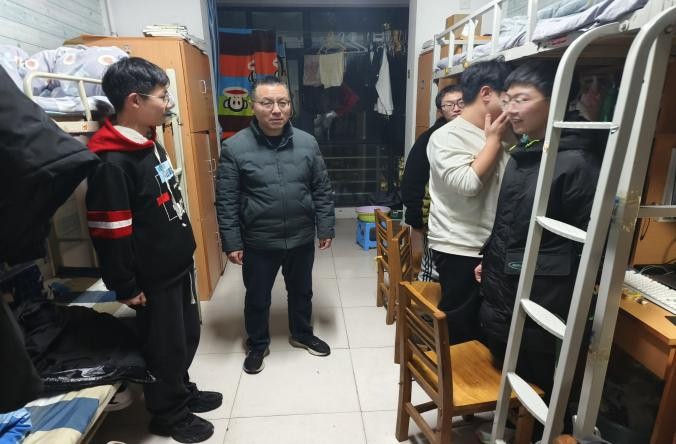 在排查过程中,郑宝林带领辅导员走进宿舍,与同学们亲切交流,询问寒假生活中的趣事、聊聊家常,了解同学们的返家乡社会实践活动情况。同学们也积极分享自己的感受与收获。通过交流,辅导员帮助员工尽快收心,调整学习状态,投入到新学期的学习中。