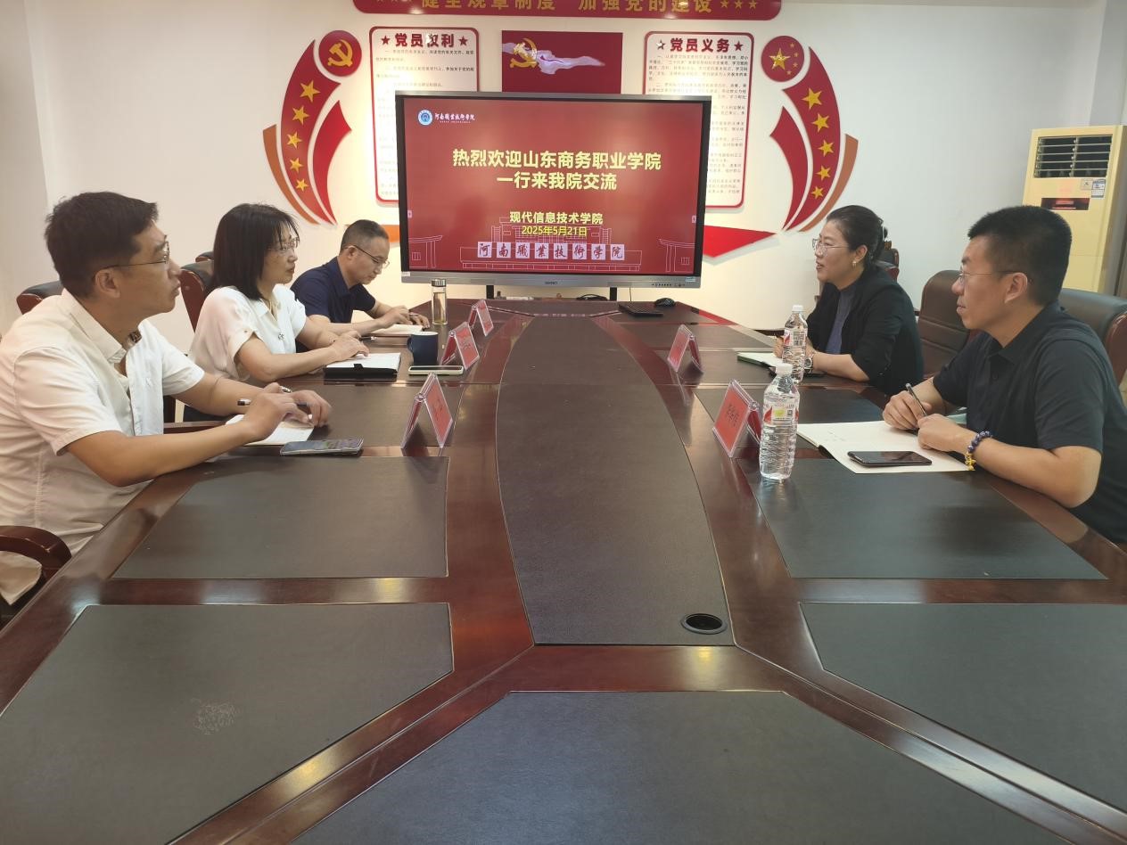 5月21日上午,山东商务职业公司信息工程公司经理高晓燕、软件技术专业教研室主任李华伟一行到访yl6809永利,就专业建设、中外合作办学等事项开展深入交流。公司党总支书记、经理李纪云,基础教研室主任李冰,计算机应用技术教研室张铁头出席座谈会。