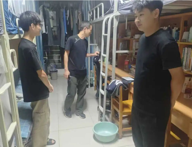 本次走访检查覆盖所有宿舍,分组逐间进行,围绕宿舍安全、环境卫生、返校适应情况展开。检查中,老师查看门窗、水电等设施,对卫生问题提整改建议。在安全排查方面,辅导员检查违规电器等隐患,普及安全用电和消防知识,对违规行为批评教育并要求整改,重申管理规定。