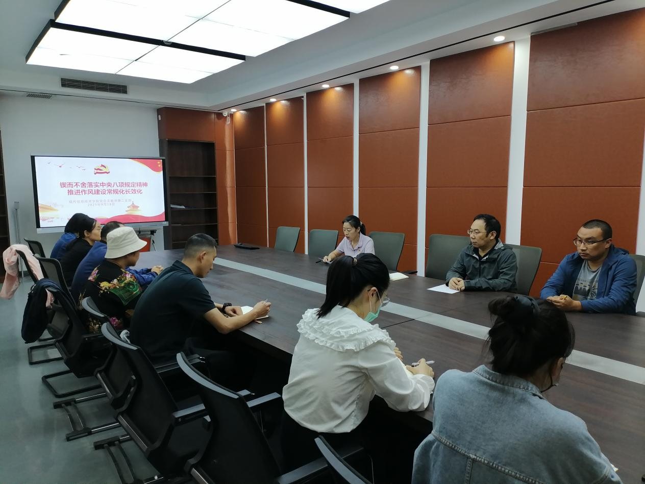 9月18日下午,yl6809永利教师二支部在笃行楼会议室召开专题学习会议,集中学习习近平总书记关于锲而不舍落实中央八项规定、推进作风建设常态化长效化的重要指示精神。全体党员参加会议。
