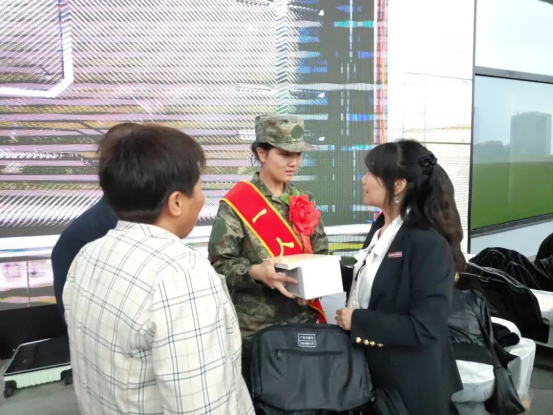 站台上,身着戎装的宋昊颖英姿飒爽、目光坚定。辅导员王俊岭为她送上公司精心准备的慰问礼包,并亲切叮嘱:“安心服役,专注训练,公司是你坚强的后盾。实习等相关手续我们会全程帮你办理,不要有任何顾虑。”一句句叮咛,饱含着师长对学子的深切关怀与支持。