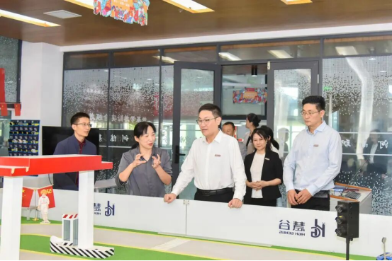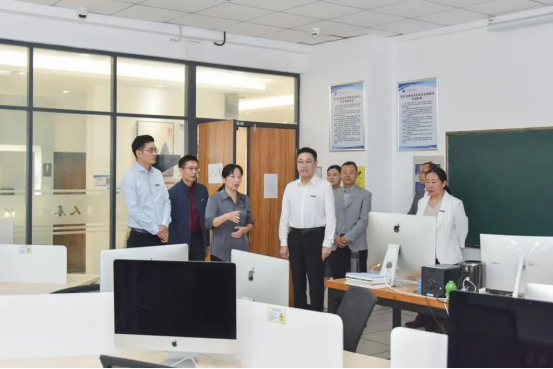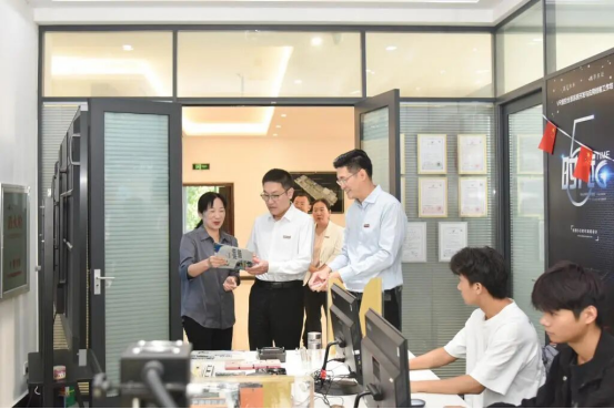 调研中,厉励一行详细察看了公司各工作室、教研室和实训室,详细了解了实训课程建设、实训设备配置、日常安全管理等方面情况,饶有兴致地观摩了师生操作先进教学设备、开展项目实训的过程,并不时就设备性能、使用频率、与产业对接的紧密度等问题与现场师生进行亲切交流。在创新工作室,厉励认真听取了负责人关于工作室运行模式、员工创新创业成果的介绍,对公司注重培养员工实践能力和创新精神的做法表示赞许。同时,还仔细检查了消防设施、用电安全及操作规程上墙等安全管理措施落实情况,叮嘱公司负责人要时刻绷紧安全之弦,确保教学实践环节万无一失。