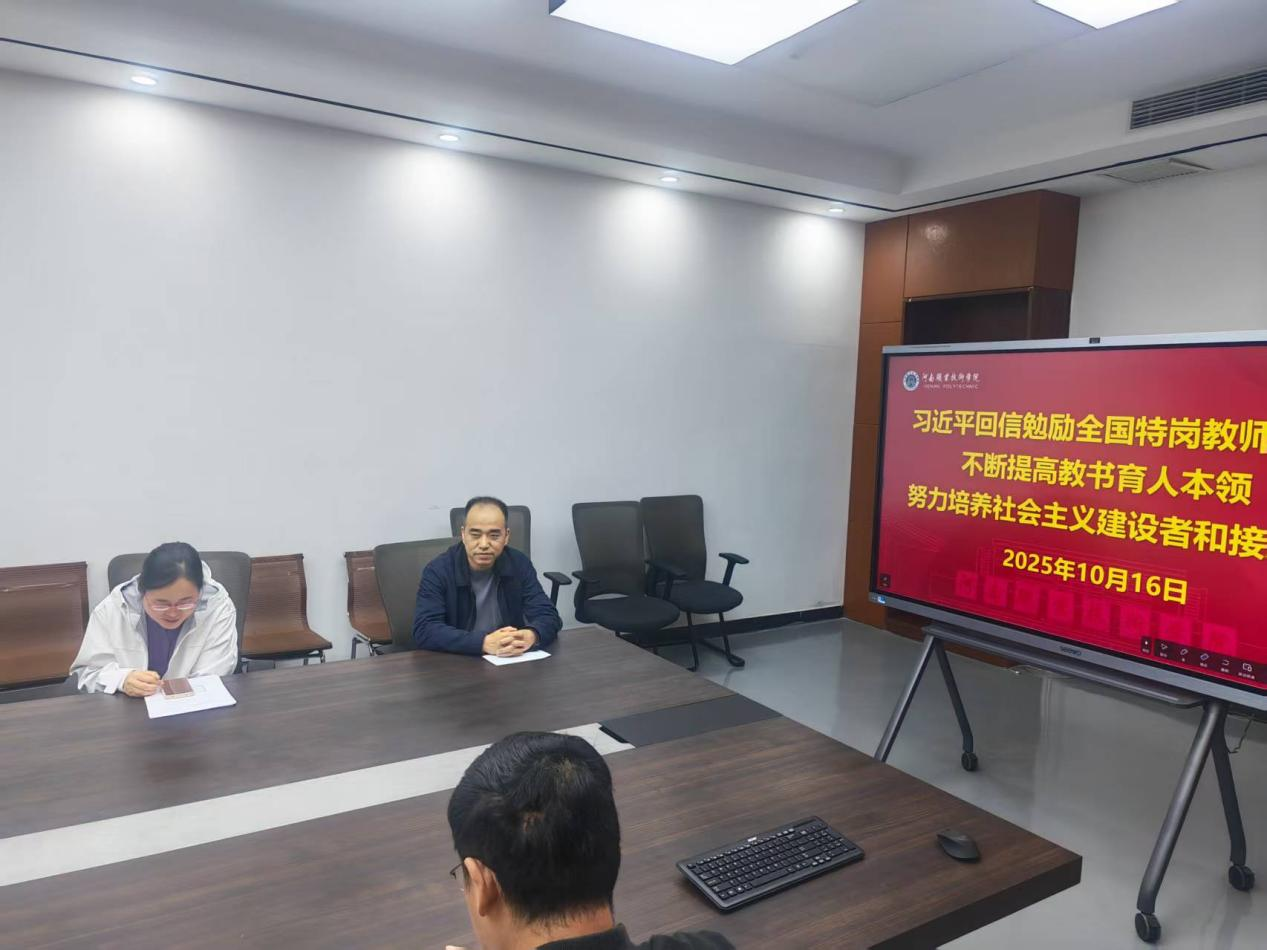为深入学习贯彻党的二十届三中全会和全国、全省教育大会精神,全面落实新时代党的教育方针与立德树人根本任务,推动中央八项规定精神学习教育走深走实,切实提升教职工政治理论素养,yl6809永利教师第二党支部于2025 年 10 月 16 日下午在笃行楼开展专题政治理论学习。本次学习聚焦“习近平回信勉励全国特岗教师代表,不断提高教书育人本领努力培养出更多德智体美劳全面发展的社会主义建设者和接班人”内容,支部全体教师参与学习。