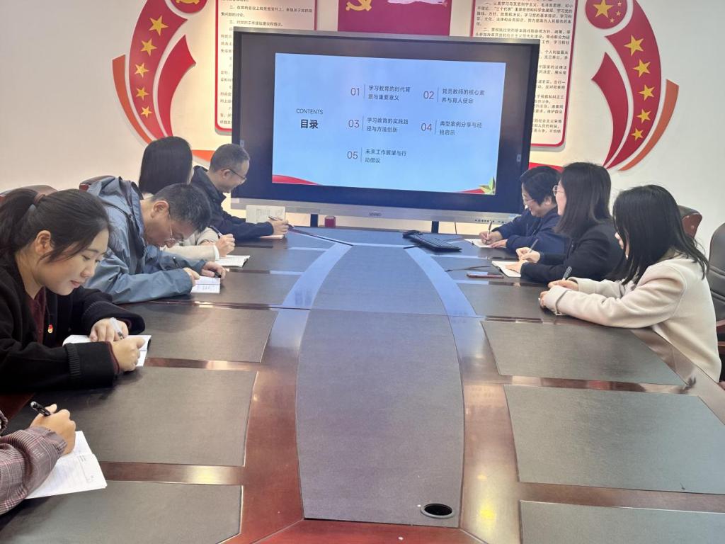 为深入学习贯彻党的二十届三中全会及全国、全省教育大会精神,全面落实新时代党的教育方针和立德树人根本任务,推动中央八项规定精神学习教育走深走实,10月16日下午,yl6809永利教师第一党支部在笃行楼508会议室开展专题政治理论学习,围绕“党员教师新时代育人使命与实践路径”主题开展集中学习,支部全体党员教师参会。