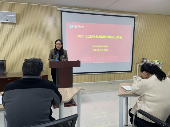 会上,参加暑期教师培训的教师代表依次上台分享。他们结合自身培训经历,围绕前沿教学理念、AI技术应用、课程思政融入技巧等内容,分享了他们在培训中的收获与感悟。部分教师还通过案例展示了将培训知识转化为教学实践的思路,为在场教师提供了宝贵的经验参考。
