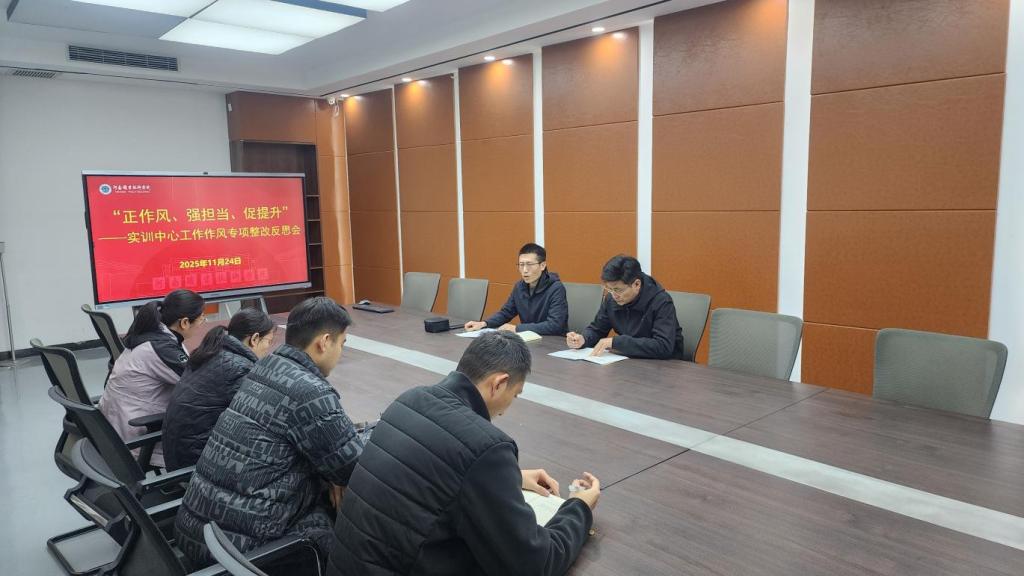 实训中心全体管理人员结合自身岗位职责,围绕安全管理、设备维护等重点问题,逐一进行自我反思发言。大家主动认领问题、深刻剖析原因,纷纷表示将以此次会议为警醒,坚决整改工作中的松懈心态,严格遵守安全管理制度,加强设备日常巡检与维护,以更优质的服务保障实训教学顺利开展。