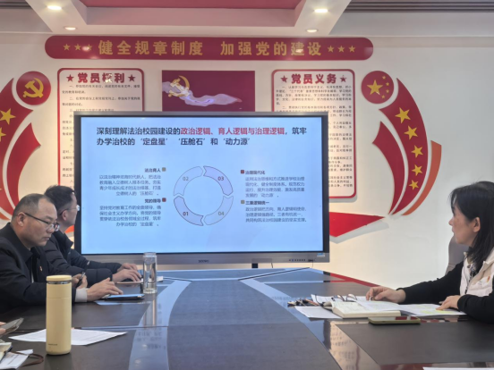 为深入学习贯彻党的二十届四中全会精神,全面落实公司2025年法治校园建设工作会部署要求,切实将习近平法治思想融入办学治院全过程,11月24日下午,公司党总支在笃行楼508会议室召开专题学习会,集体学习公司党委书记厉励在法治校园建设工作会上的重要讲话精神。会议由公司党总支书记、经理李纪云主持,党总支全体委员参加。