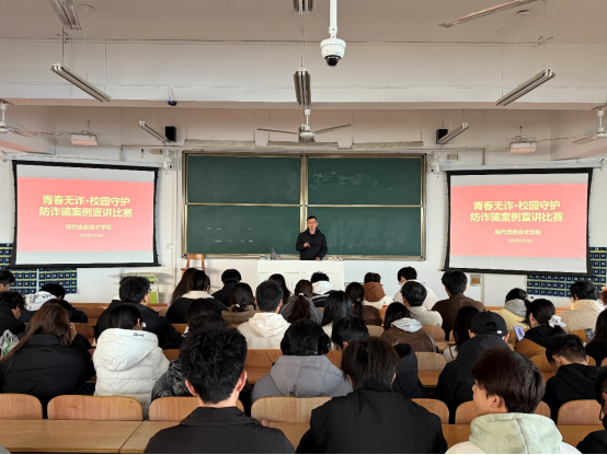 其中,一位同学通过模拟“冒充公检法人员”的诈骗电话,惟妙惟肖地再现了骗子的恐吓话术和心理操控技巧,引得全场屏息凝神;另一位同学则用数据说话,展示了近年来高校员工受骗金额的统计图表,用冰冷的数字敲响了警钟。更有选手创新性地将防诈要点编成朗朗上口的“顺口溜”,赢得了满堂喝彩。每一个宣讲的案例都凝聚着选手们对网络安全的深入思考,也展现了现代信息技术学子用专业知识服务社会的责任担当。