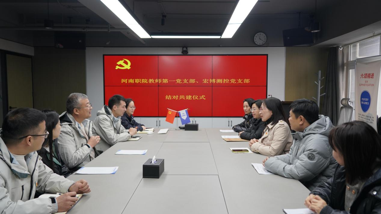 为深入推进党建与业务深度融合,加强校企党组织交流合作,1月4日,公司党总支书记李纪云同志带队,支部书记翟慧及党员代表张璞、王俊平、梁静一行前往河南宏博测控技术有限公司,开展支部互融共建活动。河南宏博测控技术有限公司党支部书记卜祥洲热情接待了公司一行。