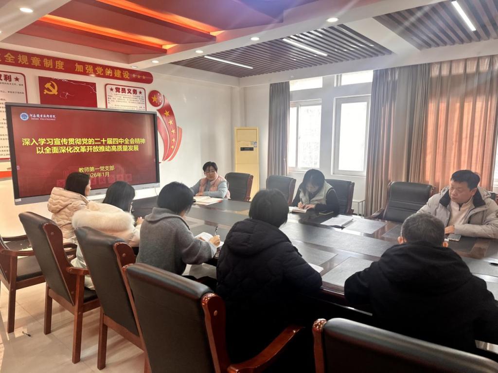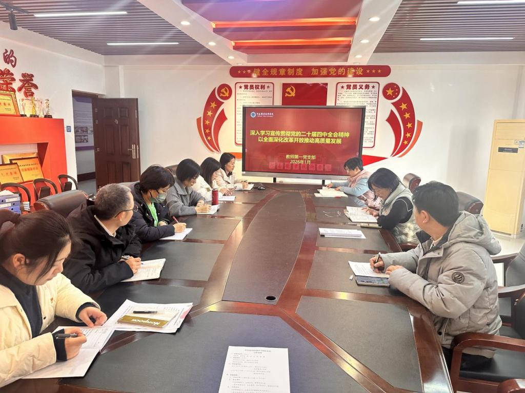 1月5日下午,yl6809永利教师第一党支部在笃行楼508开展《深入学习宣传贯彻党的二十届四中全会精神,以全面深化改革开放推动高质量发展》的集中学习活动。本次学习由支部组织委员张璞领学,支部全体党员参加。