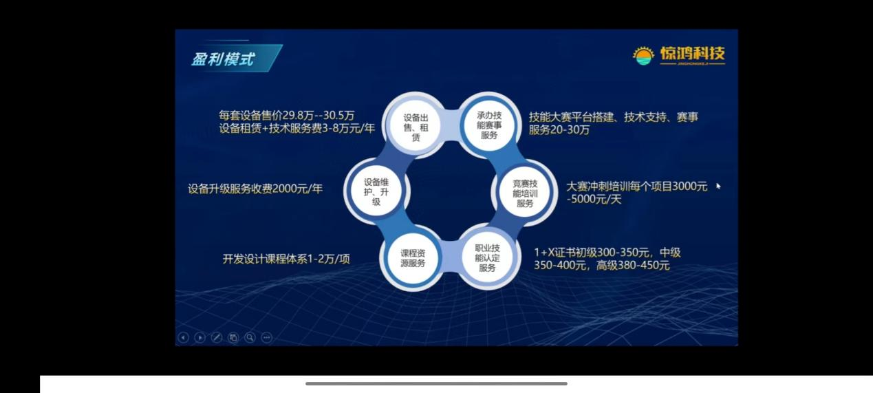 学长讲了职业教育的重要意义,他讲了竞品分析,从公司,产品定位,服务内容,优势,劣势几个方面讲述,讲述了惊鸿科技,恒君科技和智教电子科技几个公司的情况。其次是讲知识产权方面,有专利内容,专利所有人,取得方式,专利解决项目的问题已经专利编号,登记号。然后又讲述了商业模式的几个阶段,盈利模式,例如设备出租,设备维护升级,课程资源服务,职业技能认定服务,并用图向我们讲述了收入来源有设备出租,租赁,赛事服务,课程体系这三方面。学长表示要加强就业创业的教育,让我们增加对创业的了解。最后做了后期规划,往后几年的发展目标