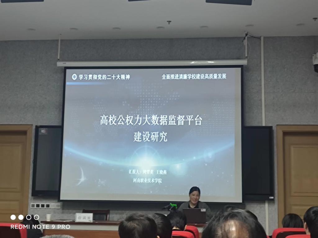 公司党总支书记周翠英、王晓燕老师撰写的论文《高校公权力大数据监督平台建设研究》荣获一等奖。周翠英做交流发言,就高校公权力大数据监督平台建设的必要性和重大意义、大数据监督平台的核心功能、具体应用场景、公权力大数据平台建设的路径四个方面,探讨了如何运用大数据技术实现高校公权力监督的科学化、精准化、智能化,把依靠“人”来监督转变为凭借“数”来监督,促进高校公权力高校公权力数字监督体系的形成。